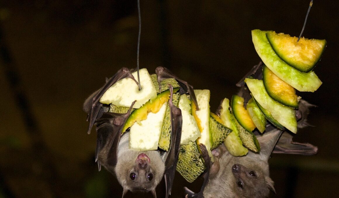 Despite their ecological importance, fruit bats face numerous threats that jeopardize their migratory patterns. Habitat destruction remains one of the most significant challenges for these species. As urbanization and agriculture expand into tropical regions, essential feeding habitats are often lost, disrupting migratory routes. Additionally, climate change poses a profound threat to their habitats and food sources. Altered weather patterns can lead to the unavailability of food, forcing bats to change their migration timings or search for new routes. Hunting practices in certain regions also contribute to population declines, as fruit bats are often targeted due to their role in consuming crops. Increasingly, the use of pesticides in agriculture can harm bats either directly or indirectly, as chemical exposure may affect their health and reproductive success. Furthermore, various diseases also threaten bat populations around the world, particularly pathogens introduced by domestic animals. Addressing these challenges requires comprehensive strategies that consider both the needs of fruit bats and the pressures on their habitats. Collaborative efforts between conservationists, local communities, and governments are vital to ensure the survival of migratory fruit bats.