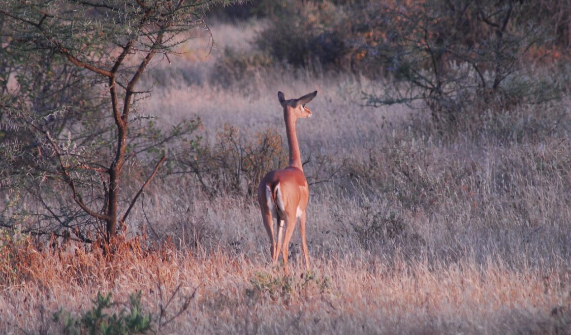 In extreme environments, prey species exhibit fascinating thermoregulatory adaptations crucial for survival. These adaptations are vital for maintaining body temperature, as extreme climates can challenge the physiological stability of organisms. For example, species residing in deserts develop behaviors that minimize heat absorption. They often become nocturnal, venturing out at night when temperatures drop significantly. Similarly, those in colder habitats may rely on insulating body feathers or fur, reducing heat loss and preserving warmth. Another adaptation involves physical characteristics, such as larger body sizes that help dissipate heat more efficiently. This phenomenon is known as Bergmann’s rule, vital in cooler climates. Prey also employ behavioral strategies like reducing activity during peak temperatures, utilizing shade, or burrowing into cooler ground. The evolutionary processes behind these adaptations reveal the dynamic interplay between organisms and their environments. These thermoregulatory adaptations are essential not merely for comfort but for survival, reproduction, and overall fitness in extreme habitats. Understanding these strategies increases our knowledge of ecological balance and the impacts of climate change on various species.