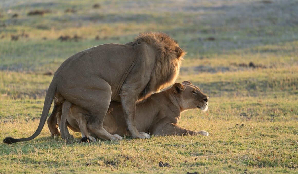 In addition to territoriality, mating rituals are vital for the reproduction of big cats. Courtship behaviors vary among species, yet they share some common elements that facilitate mating success. Male lions, for instance, will typically roar to announce their presence and establish dominance during mating season. This vocalization not only attracts females but also puts rival males on notice. Mating rituals tend to have significant implications for genetic diversity within populations as well. Additionally, females may exhibit specific behaviors, such as scent marking or vocal calls, that signal their readiness to mate. These rituals enhance the likelihood of successful breeding by allowing males to hone in on receptive females. Mating behaviors require females to navigate the risks associated with injury from competing males. Consequently, females often prefer mating with strong males capable of defending their territories effectively. Observing these behaviors provides insight into evolutionary strategies employed by big cats and their adaptability in varied environments. By focusing on the nuances of mating rituals, researchers can better appreciate the intricate dynamics of big cat reproduction, informing conservation strategies aimed at preserving their populations.