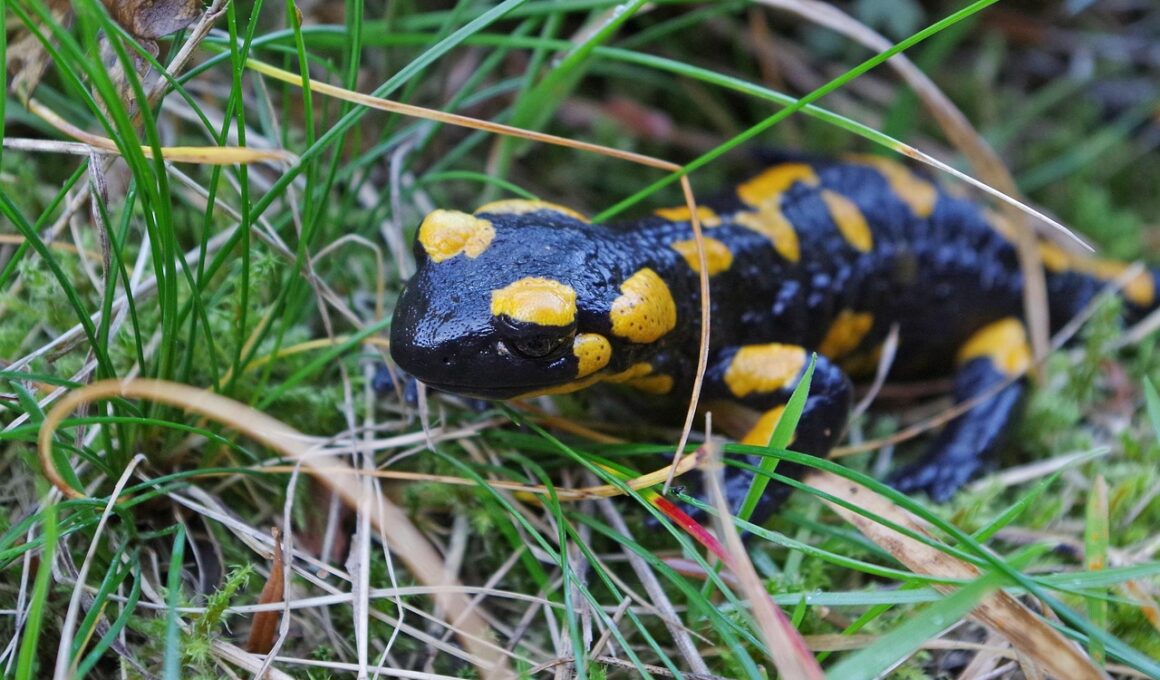 Feeding your salamanders a balanced and nutritious diet is critical for their health. Understand that these amphibians are insectivores, requiring a variety of food sources to stay healthy. Common options include small crickets, mealworms, and waxworms. Consider incorporating supplements such as calcium and vitamins to ensure complete nutrition. These supplements are essential, especially for species that require additional calcium to prevent metabolic bone disease. When feeding your salamanders, it’s essential to ensure that food is appropriately sized — never offer prey that is larger than the width of the salamander’s head. Ensuring that your pets are fed a varied diet can immensely contribute to their long-term health. You can create a schedule, offering food 2-3 times a week, adjusting based on the specific species needs. Moreover, monitor how much they eat at each feeding session to avoid overfeeding, which can lead to obesity. Always keep the feeding area clean post-mealtime to prevent mold or bacteria build-up. Providing fresh, clean water is equally important, ensuring they have access to a shallow dish that is easy to navigate and clean.