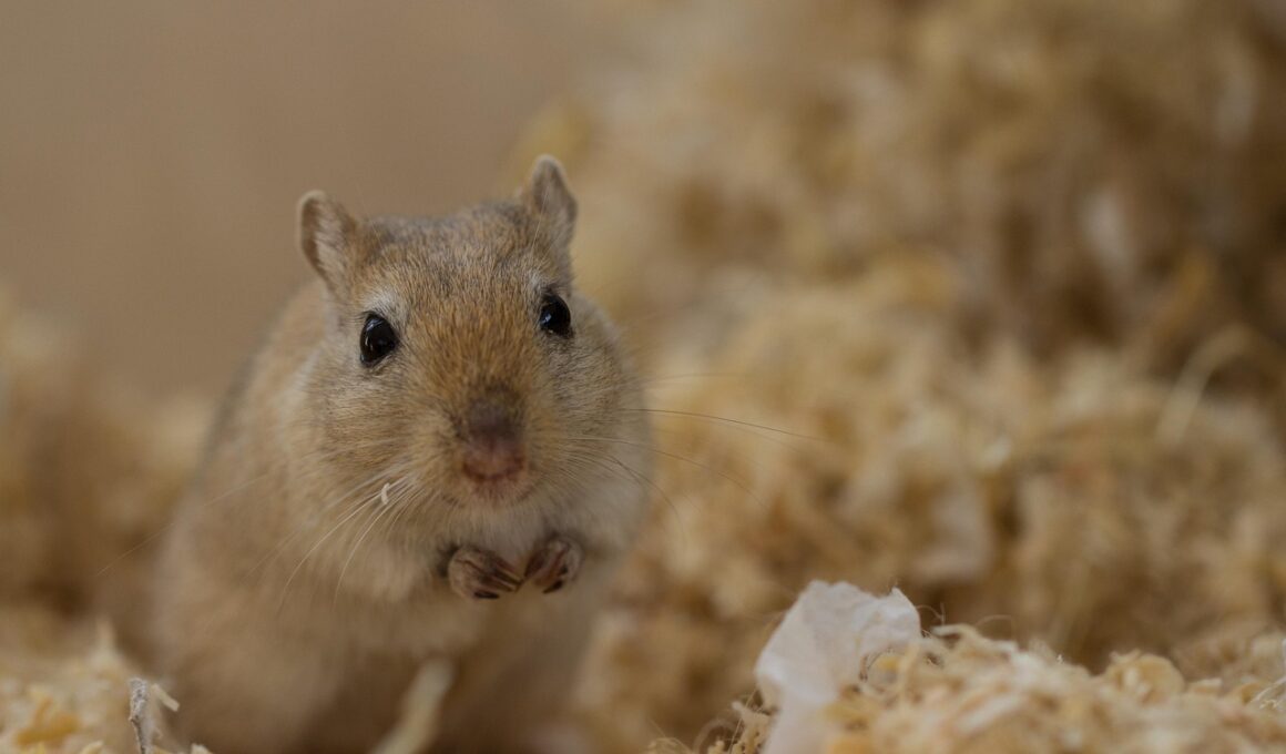 Another essential factor in gerbil grooming is maintaining proper hygiene in their habitat. A clean living space contributes significantly to your pet’s health and happiness. Regularly clean their cage to prevent the build-up of waste and odor, which can lead to health problems. A good practice is to spot clean daily, removing soiled bedding and uneaten food. Once a week, perform a deeper clean by changing out all the bedding material and thoroughly washing the cage sections with warm, soapy water. Make sure to rinse well and allow everything to dry completely before reassembling the habitat. Fresh bedding helps keep their living environment comfortable and ensures they feel safe and secure. Additionally, fresh bedding has a direct impact on your gerbil’s mental well-being, as they instinctively prefer clean areas to rest, play, and explore. Furthermore, the placement of food and water dishes should be strategically done to minimize mess, creating a cleaner space overall. Paying attention to these details not only keeps your pet healthy but also promotes a more pleasant atmosphere for you, ensuring enjoyable time spent together.
