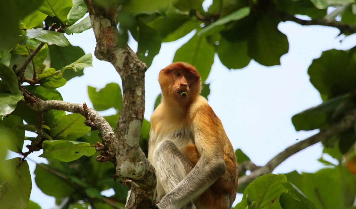 In conclusion, the juvenile development of Proboscis Monkeys encapsulates a rich array of influences fostering their growth and adaptability. Through a combination of maternal care, social interactions, environmental factors, and playful experiences, these monkeys embody complex patterns of juvenile learning and development. Socialization and observational learning during these formative years are crucial for ensuring their survival in the wild. The habitat also plays a significant role, affecting their access to food and opportunities for nurturing social dynamics. Conservation efforts remain critical in this context, emphasizing health monitoring and community involvement to ensure these animals can flourish. The insights generated from studying these monkeys can provide valuable information for broader primate research, aiding in understanding the vital roles these social creatures play in their ecosystem. Ultimately, the survival of Proboscis Monkeys hinges not only on individual efforts but also on collaborative approaches between researchers, conservationists, and local populations. Protecting their habitats and ensuring healthy development will ensure the continued existence of this remarkable species in the rich biodiversity of their ecosystems. Fostering a deeper appreciation for their traits can lead to meaningful action towards their conservation.
