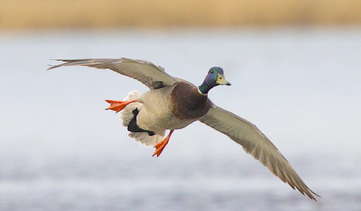 When photographing ducks in flight, consider the importance of gear selection for optimal results. A camera with a fast autofocus system and a high burst rate is essential for capturing rapid action sequences. A telephoto lens, ideally in the range of 300mm to 600mm, allows you to zoom in closely while maintaining a comfortable distance, reducing the risk of scaring the birds. A sturdy tripod helps maintain stability and reduces camera shake, enhancing image sharpness. Regarding settings, increase your ISO if necessary to maintain fast shutter speeds, especially in low-light conditions. It might also be wise to consider using burst mode; this maximizes your chances of capturing the perfect moment. Furthermore, some photographers opt for using photo accessories like bean bags for added stability. Additionally, don’t forget to pack extra batteries and memory cards to avoid interruptions during a shoot. Keeping your gear well-maintained is crucial; clean lenses for clear shots and check your equipment before heading out. Well-chosen gear not only enhances your capabilities but also increases your chances in the field of wildlife photography.