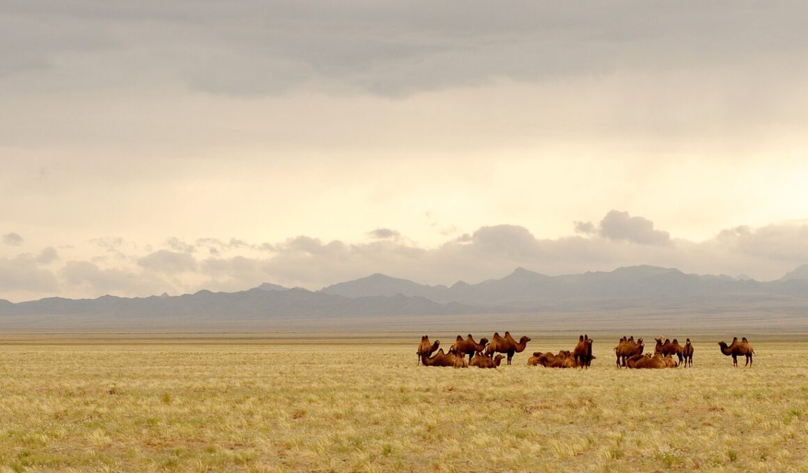 The dynamics of herbivores in the Gobi Desert significantly impact the ecosystem’s plant life. Key herbivores, such as camels and various rodents, play essential roles in shaping their environment, affecting plant growth and distribution. For instance, camels can consume tough desert vegetation, helping keep plant growth in check. Their continuous foraging has led to certain plant species evolving thorny structures, creating a defensive mechanism against herbivory. Likewise, smaller animals, such as gerbils and marmots, act as unpredictable factors by digging and burrowing, impacting soil aeration and seed viability. These behaviors promote the flourishing of various plant species in the area, exemplifying nature’s intricate balance. Another significant interaction is through seed dispersal; when herbivores consume fruits or seeds, they aid in the plants’ reproductive cycle by transporting them to new locations. The fecal matter punctured with seeds becomes a natural fertilizer for the land, fostering plant growth. Recognizing these interactions emphasizes the importance of protecting both herbivores and plants in the Gobi as they collectively contribute to maintaining the desert ecosystem’s health and functionality.