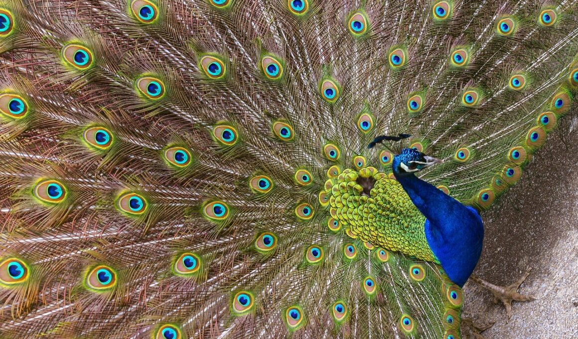 Mating displays among male peafowls have captivated both researchers and wildlife enthusiasts alike. The elaborate tail feathers of the peacock serve as a primary attractor for potential mates. These vibrant plumages, characterized by intricate patterns and shimmering colors, are not only visually striking but also play a vital role in their reproductive success. Female peafowls exhibit a preference for males with the most impressive displays, correlating closely with the characteristics of fitness and genetic viability. This selective pressure reinforces the evolution of mating displays, simultaneously impacting population dynamics and genetic diversity within the species. Moreover, the display of such extravagant features can signal the male’s ability to thrive despite environmental stresses. The courtship rituals, often involving choreographed movements, further illustrate the complexity of these interactions. In studying these patterns, researchers can glean insights into the mechanisms of sexual selection. The importance of these displays extends beyond individual attraction; they are integral to the broader ecological narrative of peafowl, revealing interconnected systems among mating, survival, and evolutionary pressures.