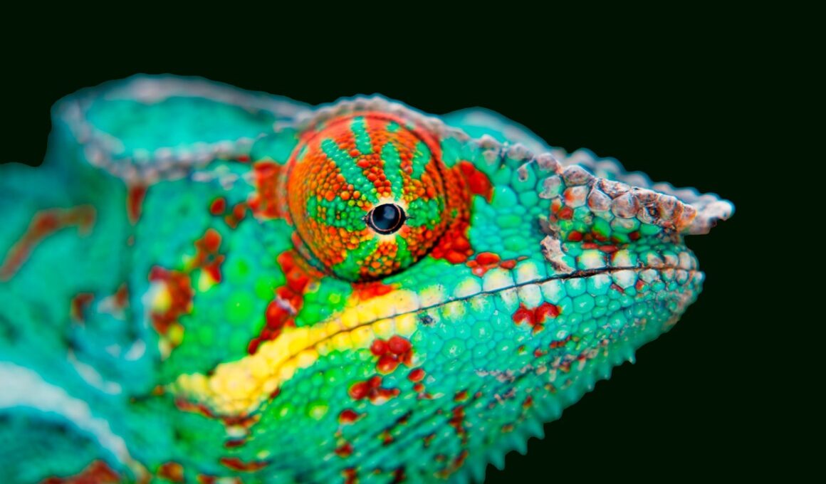 Chameleons also display fascinating social behavior that complements their camouflage abilities. Despite their renowned solitary nature, these reptiles can have complex interactions, especially during mating seasons. Males often engage in displays of color change to establish dominance over one another and attract females. This behavior serves not only as a means of competition but also as a strategy to communicate emotional states, territorial boundaries, and even readiness to mate. During courtship, males can exhibit bright colors to signal their health and genetic fitness to potential mates. Conversely, females may also change color in response to males approaching, indicating their interest or disinterest. Understanding these social dynamics is essential for ensuring successful breeding programs in captivity, as many chameleons now face threats in the wild. By mimicking their natural habitat and social cues, conservationists hope to create conducive environments for breeding efforts. This communication through color is a rich area of exploration amongst researchers and encourages biodiversity studies. Overall, species survival hinges on effective communication, and chameleons offer excellent insights into the evolution of animal interaction.