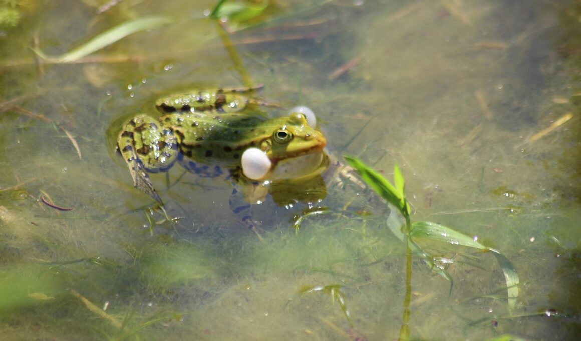 Apart from anatomical adaptations, environmental factors significantly influence frog vocalizations. Humidity, temperature, and even background noise levels can affect the clarity and volume of these calls. For instance, warmer temperatures typically enhance vocal activity among frogs, leading to increased call frequency during mating seasons. High humidity can help carry sounds further, enabling frogs to communicate over larger distances. Conversely, low humidity levels may cause vocalizations to dissipate quickly, reducing their effectiveness. Additionally, anthropogenic noise pollution from human activities can interfere with these calls, affecting mating and territorial behaviors. Recognizing each species’ adaptability in varying habitats enhances our understanding of frog communication. Some frogs have even evolved specific adaptations to cope with urban noise, altering their call patterns to ensure they remain audible. The interplay of biology and environment emphasizes frogs as indicator species of ecosystem health. By monitoring their calls, scientists can glean valuable insights into environmental changes. Ultimately, these vocalizations serve not only as a means of communication but also as a vital link to understanding ecological dynamics, demonstrating the intricate relationship between amphibians and their habitats.