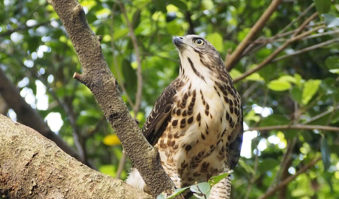 Furthermore, goshawks have developed remarkable strategies for hunting that are rooted in their advanced vision traits. When hunting, they often rely on surprise, swooping down on unsuspecting prey with incredible speed. Their sharp eyesight allows them to effectively gauge distances and trajectories during intense pursuits, ensuring precise strikes. This instinctual ability is often fine-tuned through experience, as young goshawks learn from their parents. They practice their hunting skills continually across various terrains. Such learning experiences enhance their ability to adapt to different hunting conditions, including varying light environments and prey behavior. The hunting techniques of goshawks can range from ambush tactics to rapid pursuits, contingent on the characteristics of their prey. Their adaptability in strategy, underpinned by outstanding vision, allows them to thrive across diverse habitats. Moreover, their ability to chase prey through densely vegetated areas speaks volumes about their evolutionary advantage. With sharp eyesight, combined with instinctive hunting strategies, goshawks can sustain themselves in the wild, ensuring their survival.