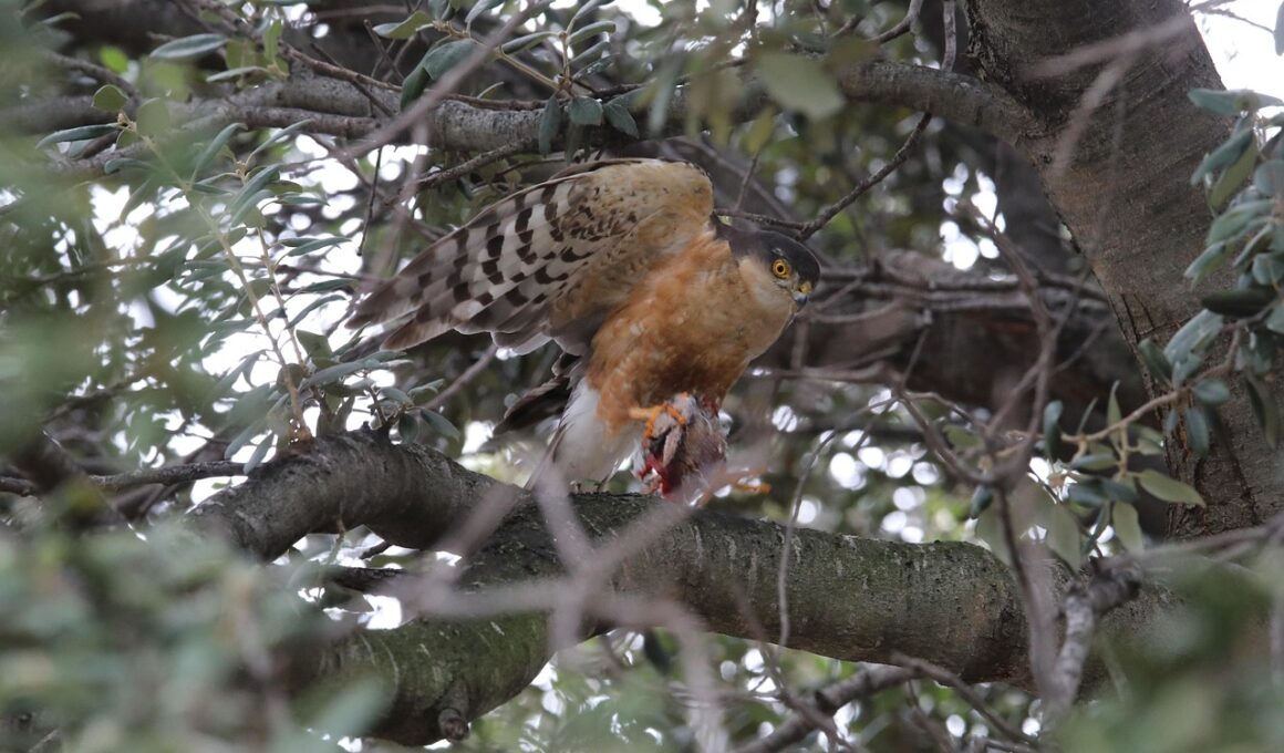 Sparrowhawks exhibit fascinating social behaviors that are often overlooked. During the breeding season, males are known to perform aerial displays to impress females, showcasing their prowess and fitness to potential mates. These displays include rapid dives, twists, and turns, which not only attract females but also establish territories. Post-breeding, sparrowhawks may form loose flocks, especially in winter when food is abundant. This communal behavior can enhance their foraging success, as they can share information regarding food sources. Despite being solitary hunters, they exhibit a certain level of social interaction, especially during feeding or in territorial disputes. Other birds of prey can be aggressive when defending their territory against competitors, but sparrowhawks often resort to displays of agility rather than direct confrontations. Alongside their hunting skills, these social interactions demonstrate their adaptability and intelligence in navigating their environment. Understanding their social behavior adds depth to our knowledge of their biology. These interactions often take place high in the woods or skies where they feel safest, and observing these behaviors can provide valuable ecological insights.
