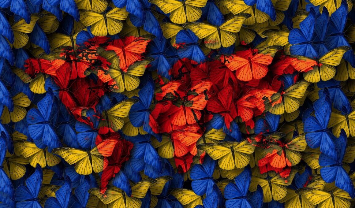 Color plays a tremendous role in how butterflies communicate effectively with their species. Bright colors can serve various purposes, primarily attracting mates and warning predators. The vivid colors found on a butterfly’s wings are often a signal of health and vitality. Males frequently display these colors in courtship rituals, where brighter individuals are typically favored by females for mating. Conversely, some butterflies have developed warning coloration, signaling to predators that they are unpalatable or toxic. Such adaptations teach predators to avoid consuming these butterflies, ensuring their survival. Research indicates that this warning coloration is not only effective against birds but also against other potential threats within their ecosystem. Furthermore, the interplay between color and light can create different visual effects, impacting how butterflies communicate with each other. For example, certain adaptations allow them to appear more radiant under specific lighting conditions. This phenomenon enhances their ability to attract mates. Through these color-based signals, butterflies can relay complex messages to one another, showcasing the intricate relationship between their physical traits and communication strategies that have evolved over time.