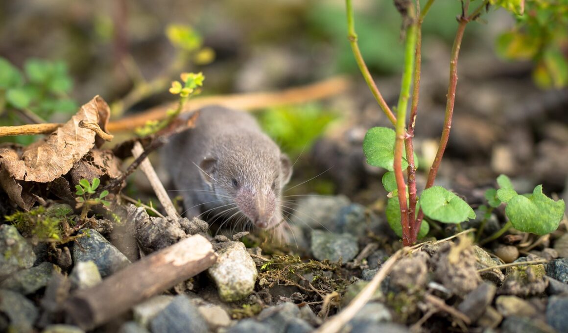 Climate change is an increasingly significant factor affecting prey availability for shrews. As habitats experience shifts in temperature and precipitation patterns, the composition of prey species also changes. Warmer temperatures may lead to earlier plant blooming, impacting the life cycles of insect species that shrews prey upon. Furthermore, alterations in moisture levels can severely affect the populations of these species, with some declining or even disappearing altogether. For instance, certain insects thrive in specific humidity conditions, and shifts in these parameters can lead to their local extinction. These phenological changes not only influence prey availability but also disrupt ecological relationships, as shrews rely on timing to synchronize their breeding with peak prey populations. The emergence patterns of insects may no longer align with that of shrews, creating mismatches that can threaten shrew survival rates. Furthermore, extreme weather events can further exacerbate habitat destruction and prey scarcity. Thus, understanding climate change’s implications for prey dynamics is paramount to developing effective conservation strategies. Collaborative initiatives focused on climate resiliency can help support these essential species and their habitats, ensuring shrews continue to thrive.