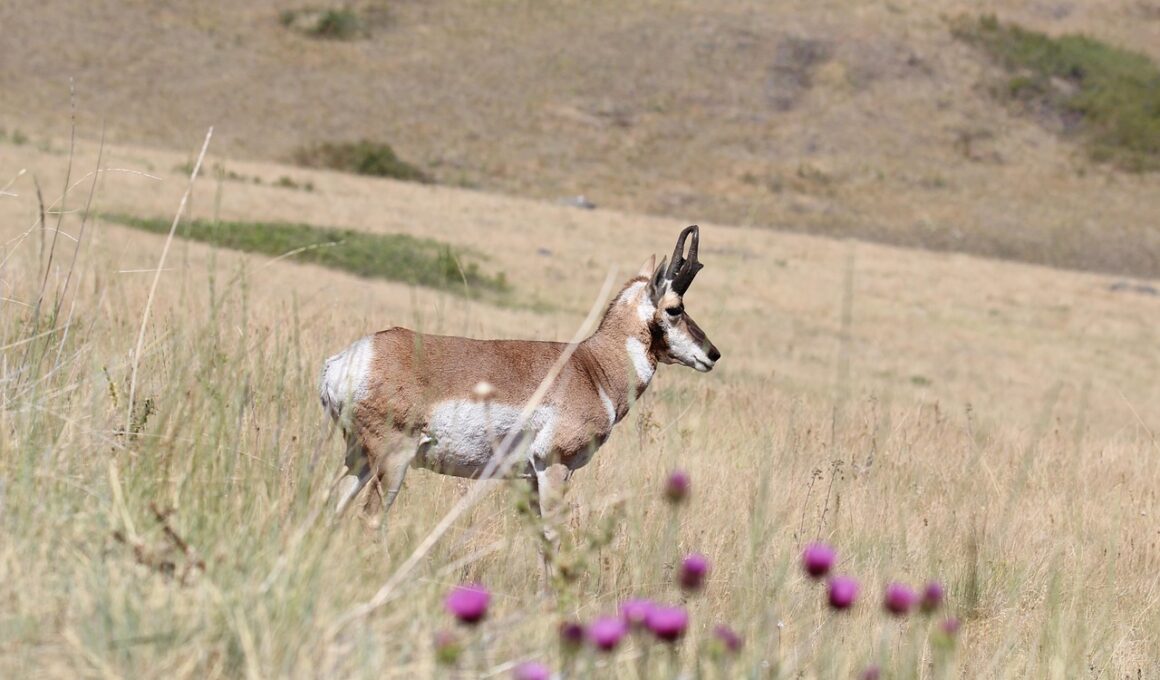 Another important aspect of pronghorns is their role in seed dispersion, which significantly contributes to grassland biodiversity. As they feed on plants and grasses, pronghorns consume seeds, which can pass through their digestive systems unharmed. Once expelled, these seeds can germinate in new locations, facilitating plant growth across wider areas. This unintentional planting contributes to the genetic mix of grassland flora and leads to increased resilience against pests and diseases. Additionally, this process allows for the colonization of plants in areas that might otherwise be unsuitable for growth. Thus, pronghorns are not merely consumers of vegetation; they also actively participate in shaping plant community dynamics. Their grazing activities can also create microhabitats for other species, such as birds and small mammals. By maintaining open grasslands that support a variety of plant life, pronghorns foster an environment rich in biodiversity. Studies have shown that regions with healthy pronghorn populations tend to host greater species diversity overall. This highlights the interconnectedness of species within ecosystems and underscores the importance of understanding pronghorns’ ecological roles.
