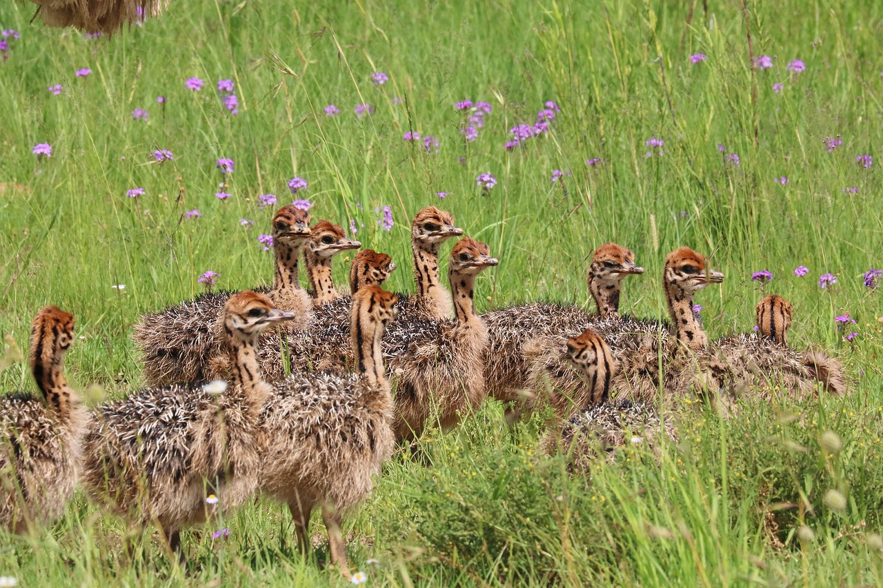 As the incubation period comes to an end, the excitement among ostrich parents increases. Eventually, the eggs begin to hatch, releasing the downy chicks into the savanna’s harsh yet beautiful environment. Each chick emerges, equipped with instincts that guide them toward survival. In these initial moments, the parental care is crucial. Both male and female ostriches remain closely bonded to their chicks, ensuring they are safe from predators. The parents quickly lead their young to nearby vegetation, teaching them to forage for food. This rapid learning is vital since the chicks must adapt to their surroundings swiftly. In the wild, survival rates for chicks can be low due to various threats, including large carnivores. The bond between the parents strengthens as they work together to protect their young. They often stay nearby, issuing alarm calls to warn of danger. Additionally, the family’s movements influence the chicks’ development, teaching them essential skills for independence. Within a few weeks, the young ostriches grow rapidly, gaining strength and confidence in their environment. The nurturing phase continues as the parents guide their chicks until they can fend for themselves.
