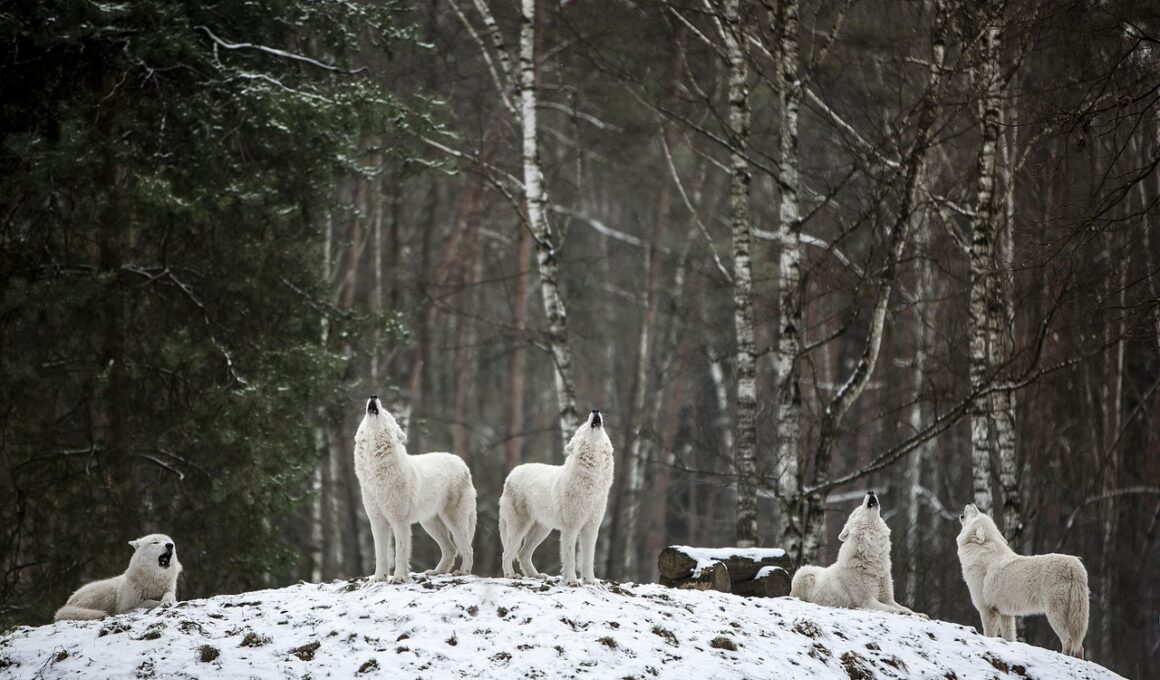 Pack structure plays a vital role in the hunting strategies of Arctic wolves. Each pack typically consists of a family unit, often led by an alpha male and female, guiding the other members to exploit food resources effectively. This structure allows for organized hunts, increasing the overall success rate when pursuing larger prey. Moreover, social interactions within the pack facilitate knowledge sharing about locations of food and hunting techniques. Younger members observe and learn from their elders, gaining essential skills for their survival. The hierarchy also influences feeding behaviors, as dominance equations often determine access to prime food sources. These dynamics contribute not only to the survival of the pack but also to the overall stability of the population within a specific territory. By understanding pack interactions, researchers have gained insight into how wolves cope with environmental pressures and ensure their sustenance. Furthermore, the social aspect of their diets emphasizes the importance of cooperation in a challenging environment. This social behavior showcases the complex nature of their feeding strategies, revealing a fascinating world of interdependent relationships created by the Arctic wolves as they navigate their harsh landscape.