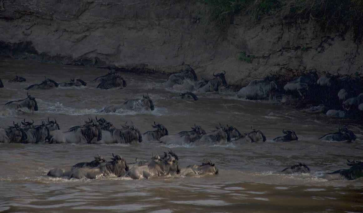 The wildebeest migration, often celebrated as one of nature’s spectacular events, occurs annually when millions traverse the Serengeti ecosystem. This migration primarily involves the blue wildebeest alongside zebras and other animals. Each year, these creatures journey approximately 1,800 miles searching for fresh pastures and water. Starting in Tanzania’s Serengeti National Park, the herds move to Kenya’s Maasai Mara, following well-defined routes. Their process adapts to seasonal changes affecting grass growth and rain patterns. This migration is a survival strategy necessary for sustaining their populations. The herds constantly face various challenges, including predators such as lions and crocodiles. As they traverse rivers and plains, they experience extreme weather variations. Adapting amidst such a dynamic environment requires not only instinct but learned behavior passed through generations. Additionally, human encroachment poses significant risks to their migration patterns, disrupting traditional routes. The wildebeest migration is not simply a wildlife spectacle; it symbolizes resilience and the intricate balance of ecosystems. Conservation efforts focus on ensuring these paths remain open, allowing the cycle of life to continue uninterrupted for future generations of wildebeests.