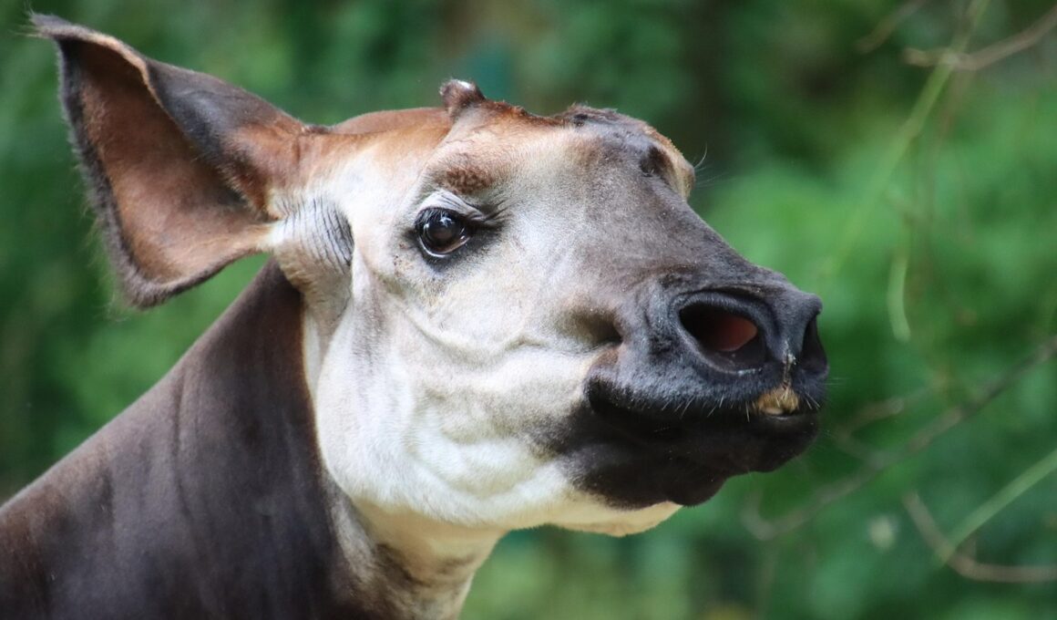Another crucial aspect of the okapi’s adaptations involves their reproductive and parental strategies. Female okapis often give birth in isolated and secure areas, reducing the risk of predation. After birth, the calf remains hidden for several weeks, relying on its mother for nourishment and protection. This approach allows the young okapi to develop strength and coordination before venturing out to explore its environment. The bond between the mother and the calf is vital, as the mother guards her young while teaching them how to forage for food. The calf learns essential skills that will help it survive independently as it matures. Further, the short gestation period of around 15 months ensures that okapi populations can stabilize despite their low reproductive rates. It is important to note that the mortality rate among calves can be high due to predators within their ecosystem. In such cases, increased conservation efforts focus on protecting mothers and calves from threats posed by poaching and habitat destruction. Supporting okapi populations through focused conservation ultimately benefits the health of the entire rainforest ecosystem.