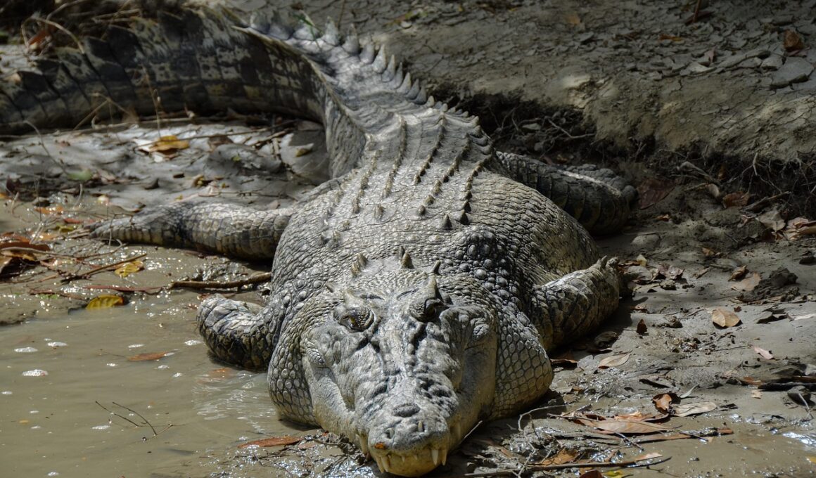 Tropical crocodilians are fascinating creatures that display a variety of unique behaviors critical to their survival in the wild. Known for their adaptability, these reptiles display complex patterns in their social and hunting behaviors. In the wild, they often regulate their body temperatures by basking in the sun during the day. They can also submerge themselves in water to stay cool or to prepare for hunting. Their primary habitat includes swamps, rivers, and lakes, where they often camouflage themselves among vegetation. These crocodilians exhibit territorial behavior, especially during mating season. Although solitary by nature, they may congregate in specific areas rich in food sources. They communicate through various vocalizations, body postures, and even physical displays. This behavior is essential, especially during courtship. Additionally, the interaction between different species can vary significantly, often resulting in complex social hierarchies. Through direct observations, researchers have gained insights into the adaptive strategies crocodilians utilize in their natural environments. Understanding these behaviors helps scientists develop conservation strategies to protect their rapidly declining populations across the tropics. Learning more about their habits enriches our appreciation for these incredible reptiles.